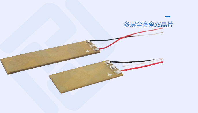 采用全陶瓷設計取代傳統雙晶片,陶瓷+金屬(聚合物/碳纖維)+陶瓷,的結構設計,使得其出力遠大于普通雙晶片。雙晶片具有雙層設計,施加電壓時,其中一層收縮,另一層膨脹,于是產生變形。這些雙晶片通過流延和共燒技術制造,可靠性高,非常適合 光學斬波器、彎管機以及泵浦和計量應用。