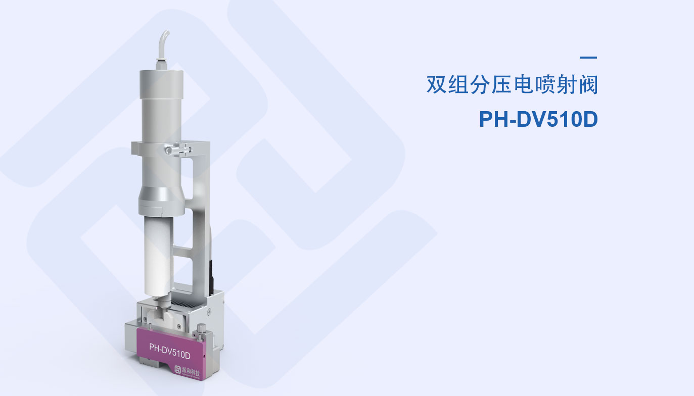 PH-DV510D系列雙組分壓電噴射閥,利用壓電陶瓷做為驅動源,實現高頻率的非接觸式雙組分液滴噴射,并通過制冷組件有效延緩混合膠液固化時間,噴射狀態高效穩定,可實現混合后粘度0 ~ 200000cps的膠液噴射。應用于電子3C封裝,新能源電池填充等技術領域的關鍵工藝環節。