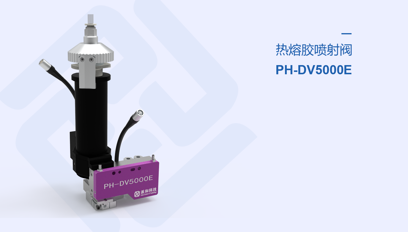 PH-DV5000是針對中高粘度熱熔膠的噴射閥,原理與結構設計獨特,具有獨立知識產權。該閥噴射的力度更大,對中高粘度的熱熔膠效果更好,經過長期生產驗證,點膠穩定可靠,可解決熱熔膠點膠工藝中經常出現的氣泡、掛膠、散點等問題,適合所有需要熱熔膠精密噴射的生產工藝。